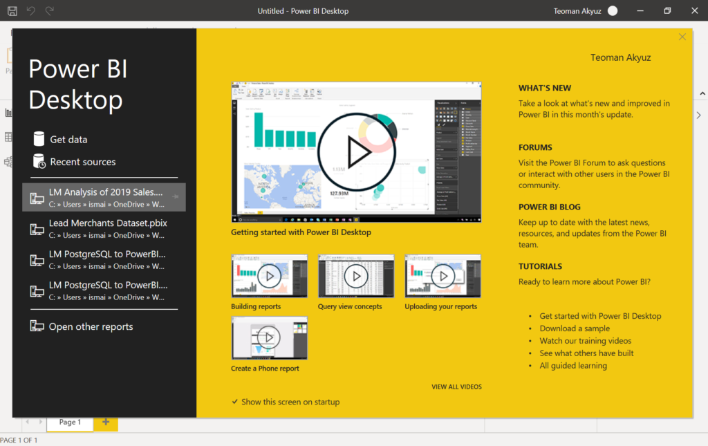Open the Power BI (PBI) desktop, sign in, and the program starts with the below dialogue box.