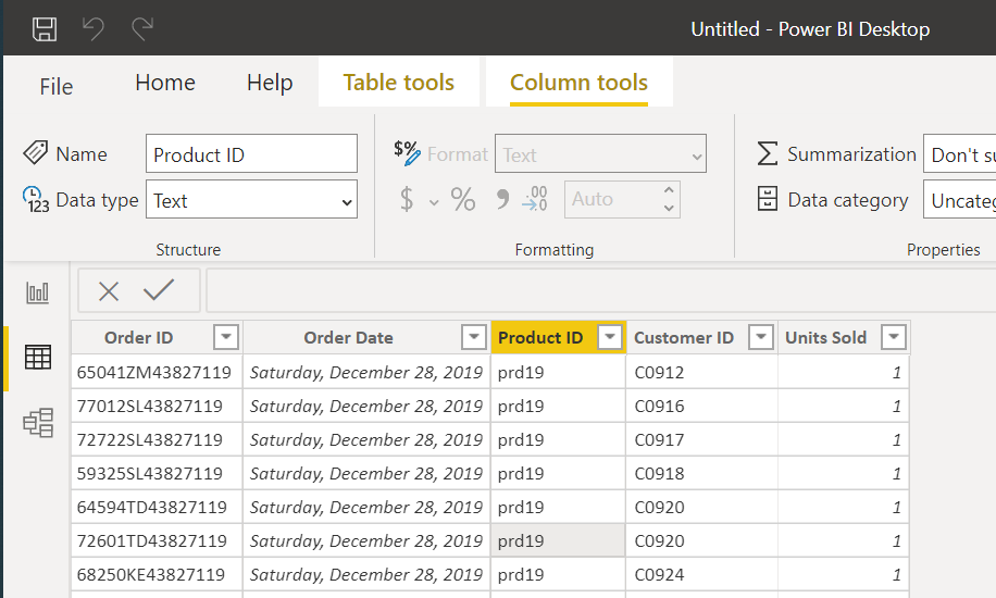 Under the Home menu press Close & Apply; this will take you to Data View in PBI.