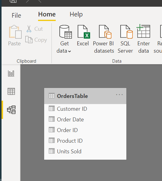 On the right of the window, there is the Fields pane in all Views. This pane shows all tables and their columns. You can do some edits on the tables and columns in Model view but we will go to Data View and work on the tables there.
