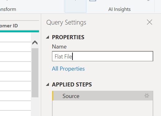 Now we have a new table named Merge1, rename under Query Settings Properties as Flat File.