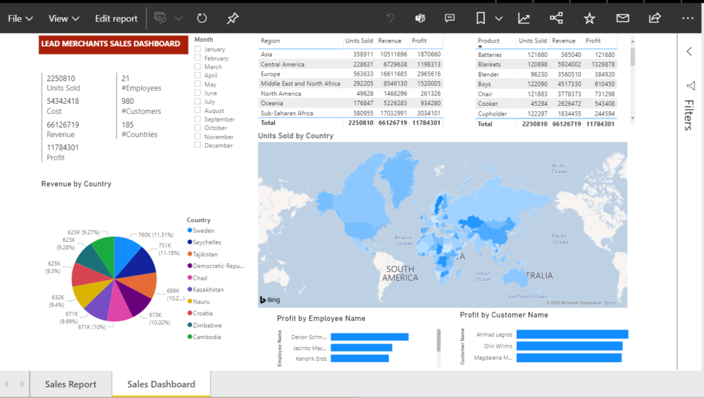 We will edit the report ‘Sales Dashboard’ and add another visualisation.